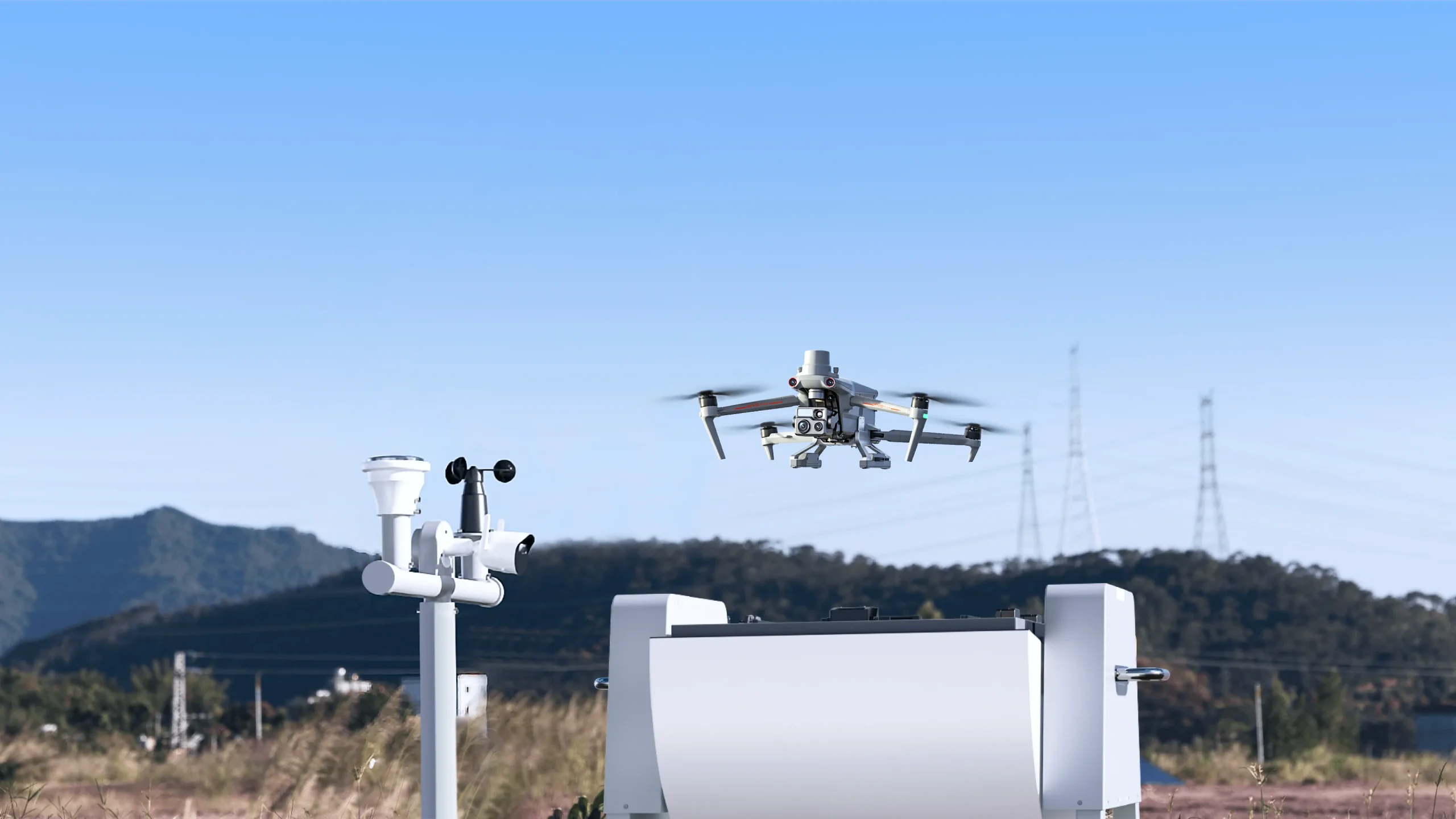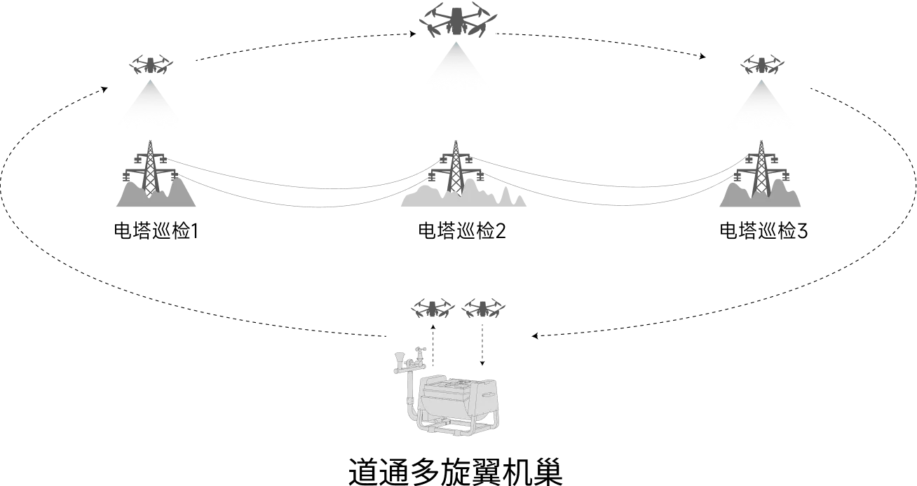 道通多旋翼机巢日常可部署于作业巡逻区域,实现无人机自动起飞、精准降落、回收停放、自动充电。